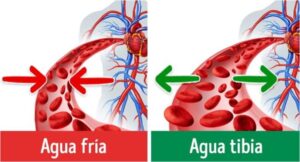 El agua fría provoca el estrechamiento de los vasos sanguíneos.